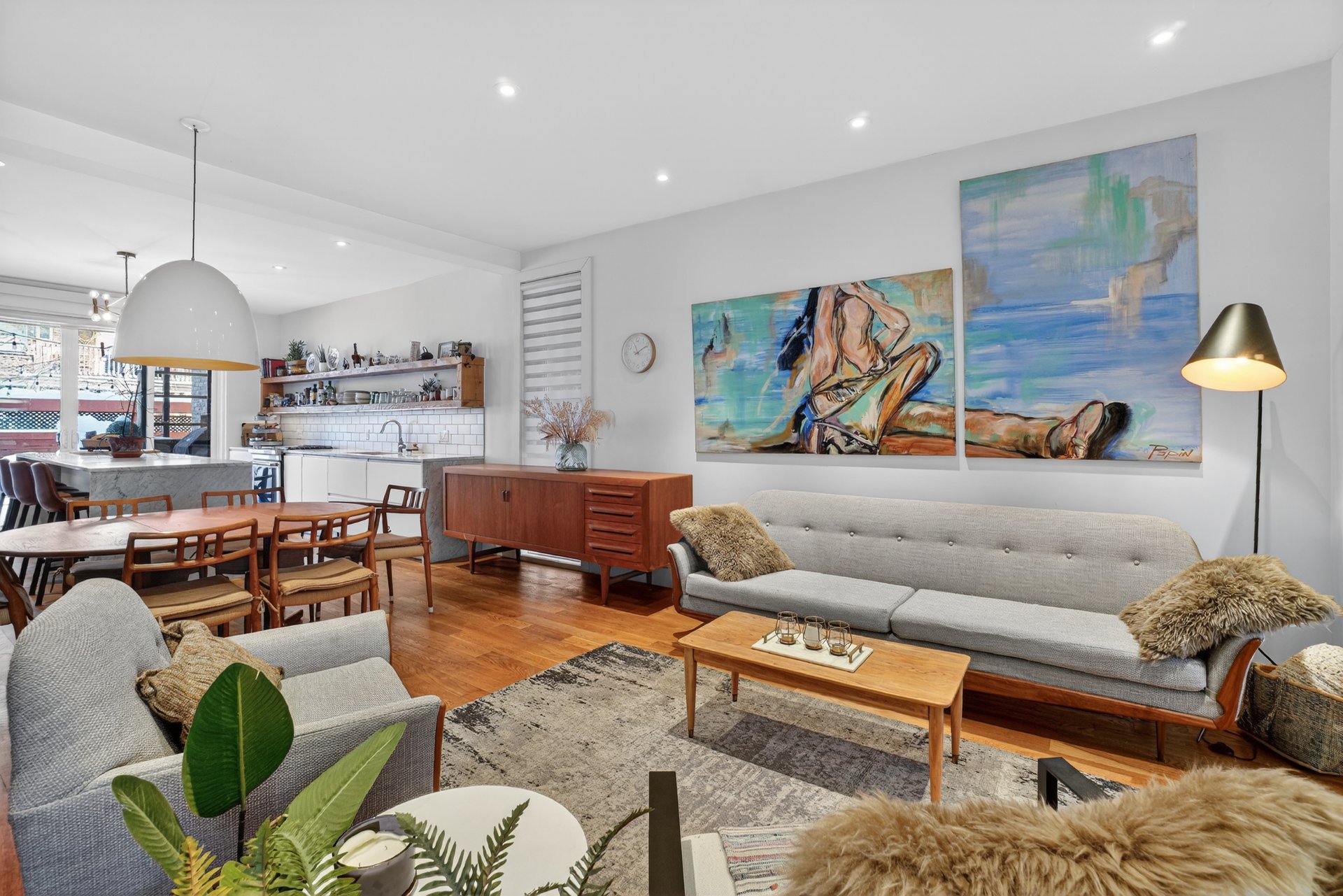 Vaste espace de vie à aire ouverte réparti sur deux